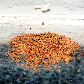 As their name implies, Drywood Termites feed on dry wood, typically above the soil. Colonies are constructed inside the wood and can be hard to detect. One common way to identify termite damage is by the fecal pellets they leave behind. Commonly kicked out by workers these pellets are about the size of a grain of sand.